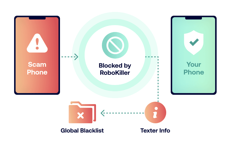 Robokiller doesn’t just prevent unwanted and annoying scam calls, we can help prevent unwanted texts, too. Our advanced software also uses metadata associated with a text to look for common characteristics of a spam text. It will then automatically anonymize and remove identifiable information like your name and phone number, and then determine whether or not to block it for good.