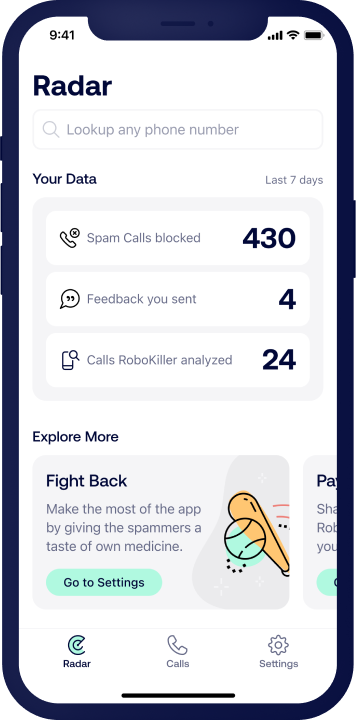 RoboKiller is your secret weapon to disarming the threats and distractions of unwanted calls and messages. Together, we can stall, screen, and stop unknown calls so that you can live life spam-call-free™.